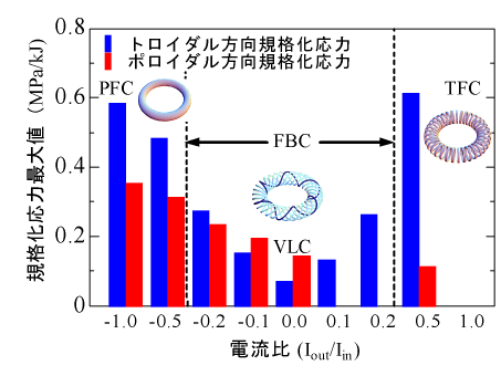 上で説明した電磁力平衡コイルにより、ある方向の電磁力を大幅に低減させることが出来るようになりました。しかし、実際に低減させるべきものは電磁力ではなく、それを支えるコイル、支持材に生じる応力です。